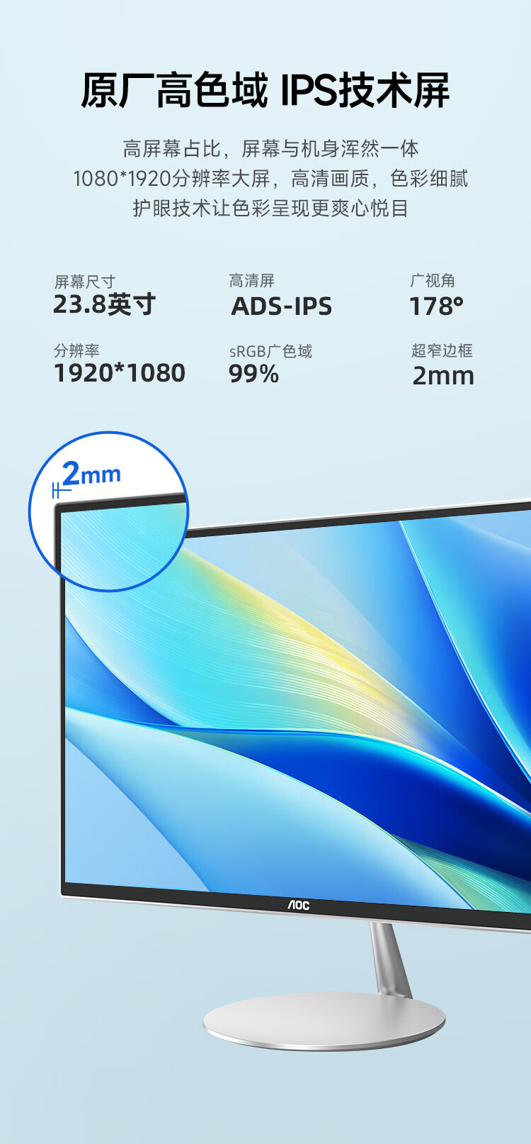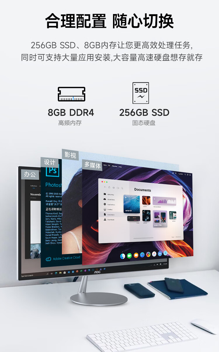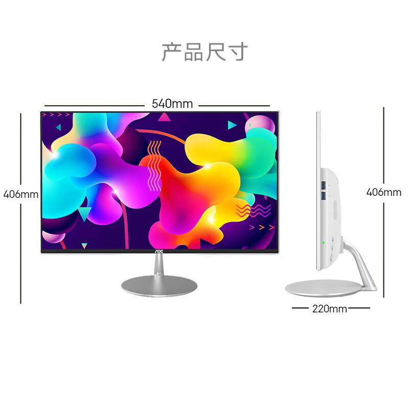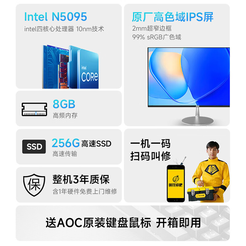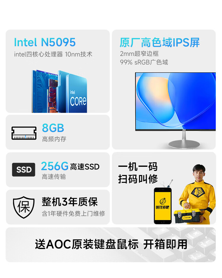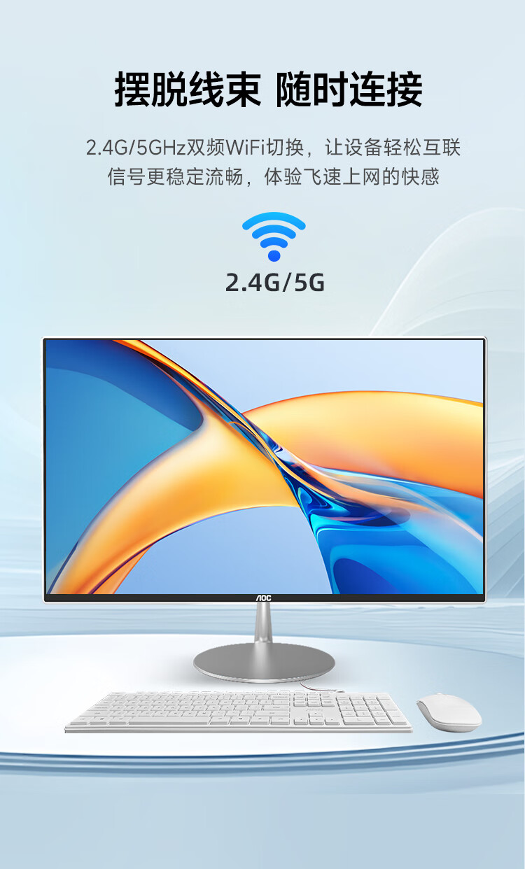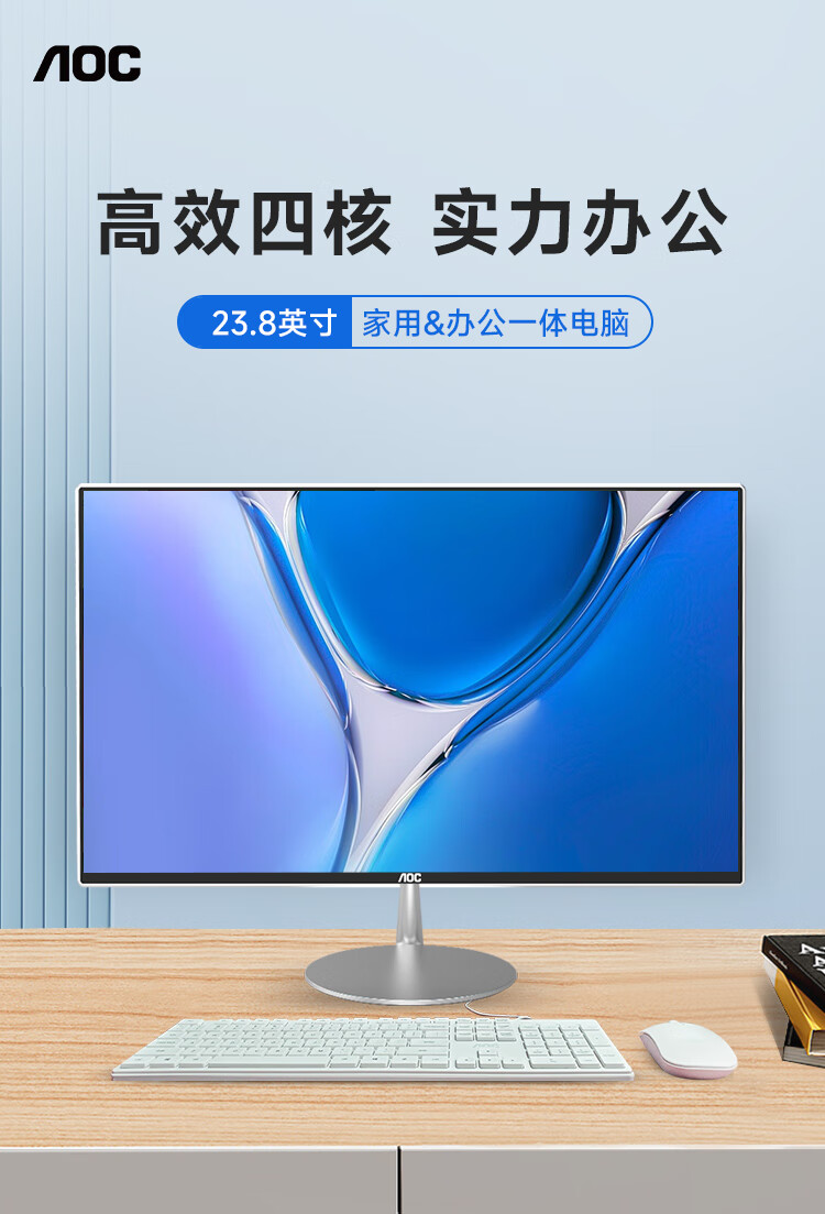 AOC国家补贴20%美人鱼734 23.8英寸高清商用办公一体机电脑台式主机(11代N5095 8G 256G WIFI 键鼠)白